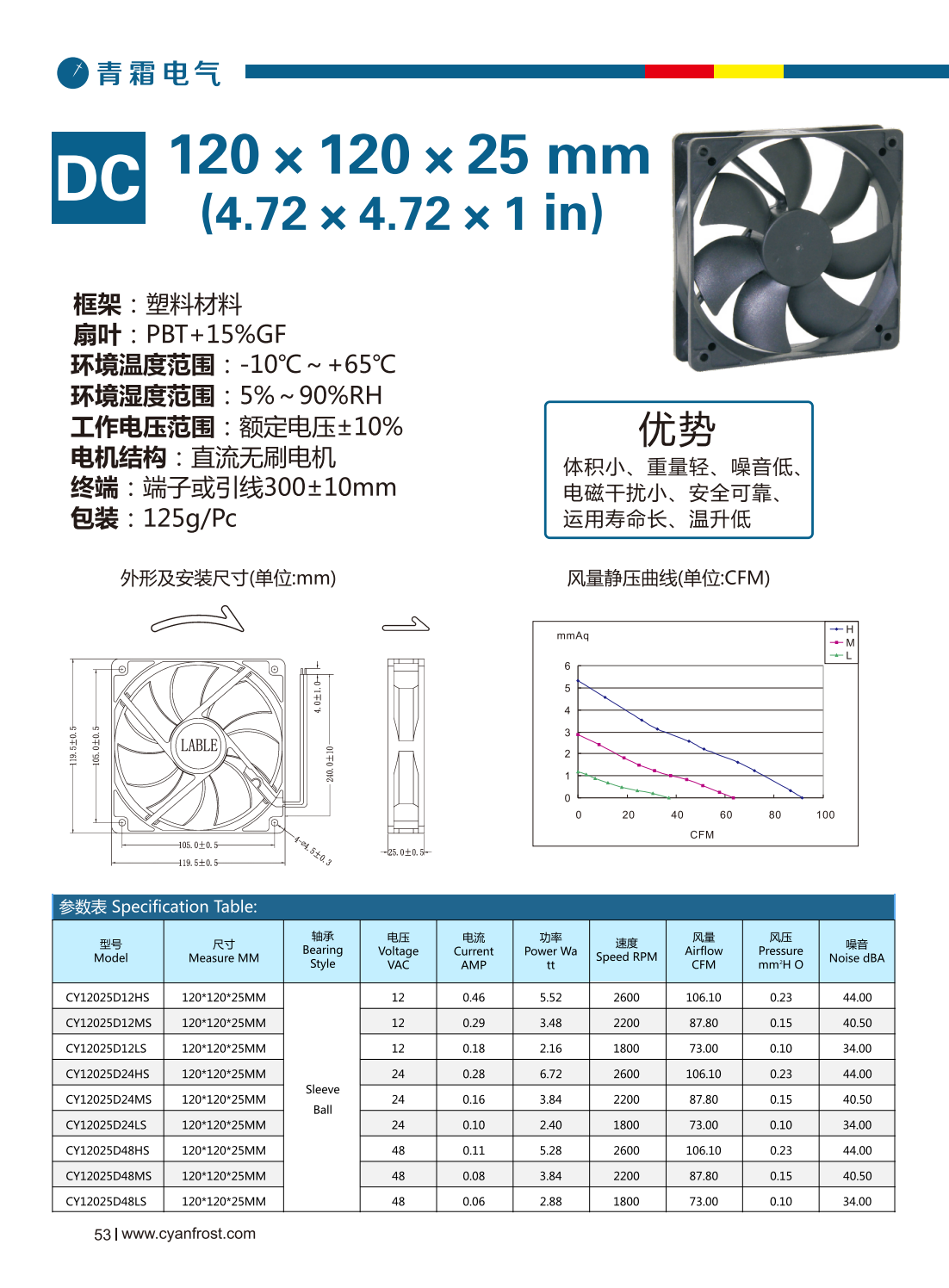 框架:塑料材料 扇叶:PBT+15%GF 环境温度范围:-10℃~+65℃ 环境湿度范围:5%~90% RH 工作电压范围:额定电压±10% 电机结构:直流无刷电机 终端:端子或引线300±10mm 包装:125 g/Pc